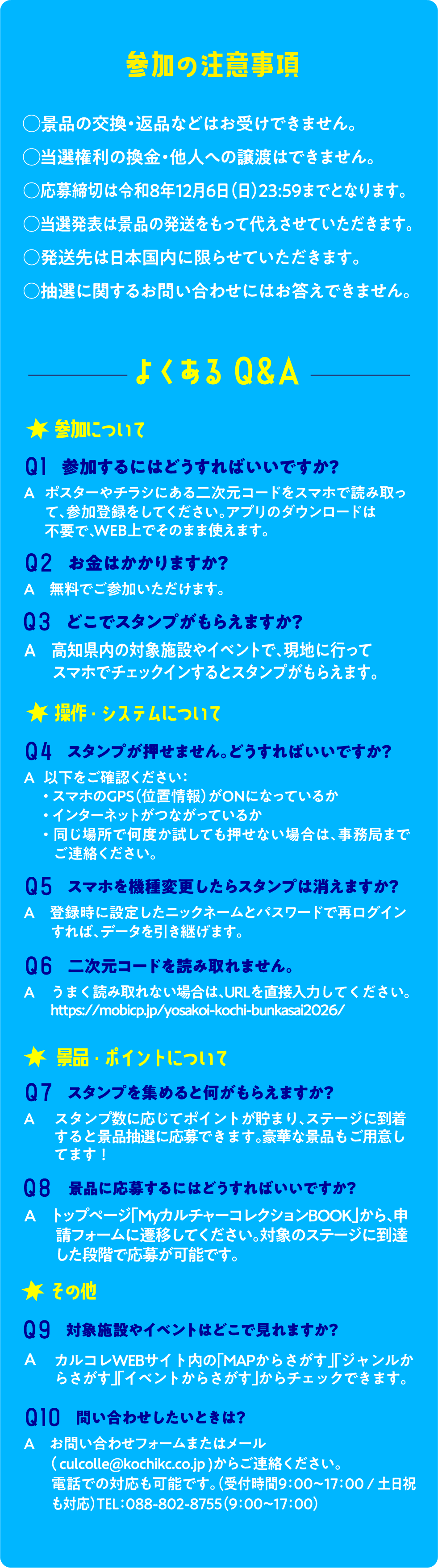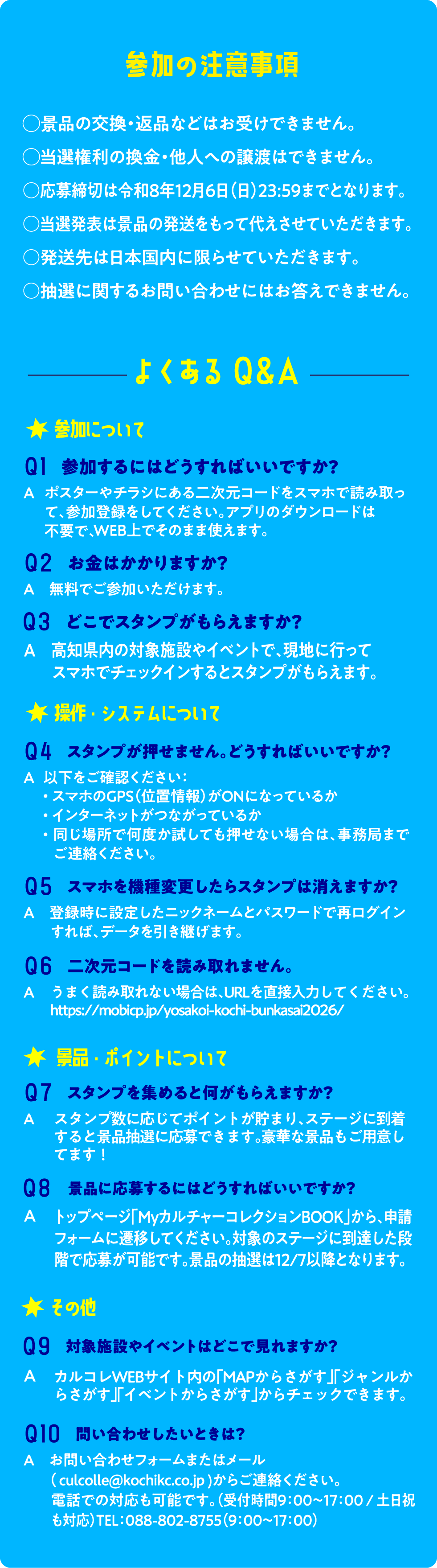 [実施主体] よさこい高知文化祭2026高知県実行委員会 [お問い合わせ] よさこい高知文化祭2026PR事務局 TEL:088-802-8755(9:00〜17:00) E-mail:culcolle@kochikc.co.jp